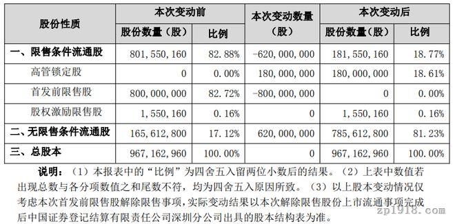 本次股份解除限售及上市流通后,公司股本結構變化情況如下: